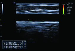 Automatyczny pomiar grubości kompleksu intima-media tętnicy szyjnej.